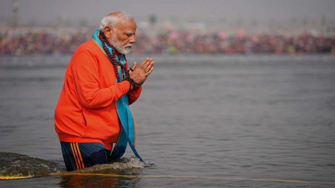 વડાપ્રધાન મોદીએ સંગમમાં ડૂબકી લગાવી : પૂજા - અર્ચના કરી